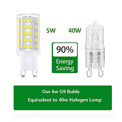 LAMPADINE A RISPARMIO ENERGETICO: Con 400 lumen luce bianca fredda 6500K, questa lampada a LED G9 non sfarfalla, sostituisce la lampadina alogena da 40W.