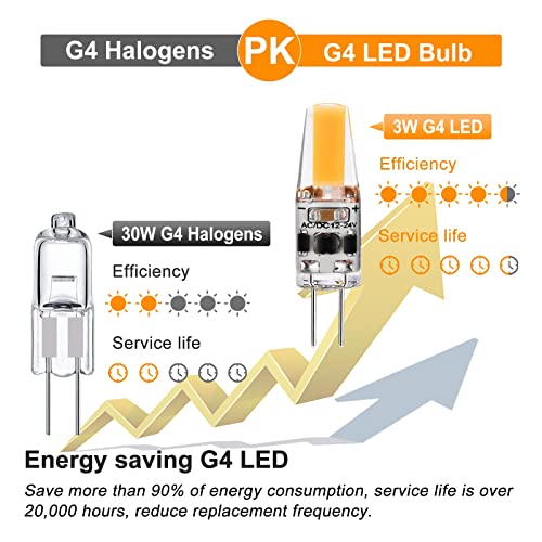 ✦【LED G4 a risparmio energetico】Questa lampadina G4 LED BI-Pin offre un'emissione luminosa di 270LM. Luminosa come una lampadina alogena G4 da 20W 30W, consente di risparmiare il 90% sulla bolletta dell'elettricità. Con una durata di vita fino a 20.000 ore, è possibile ridurre il fastidio di sostituire frequentemente le lampadine a incandescenza.