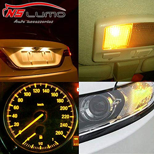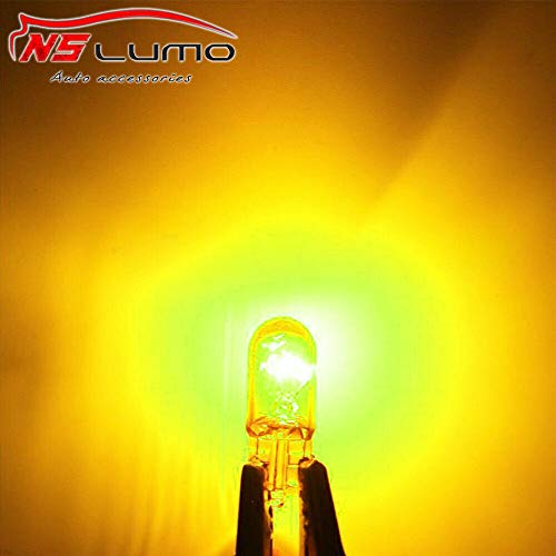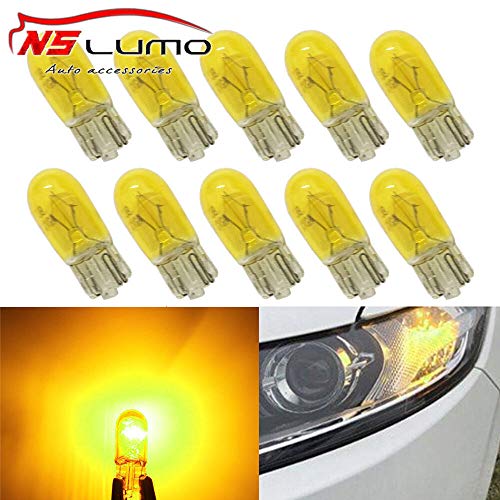 Lampadine alogene T10 w5w 194 168 501 con base a cuneo DC 12V 5W, giallo, per luce di parcheggio, segnalatore laterale e cruscotto