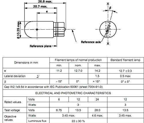 Tipo di base: T10/194 (W2.1 x 9.5d Wedge), dimensioni: 9.7 mm x 24.66 mm
