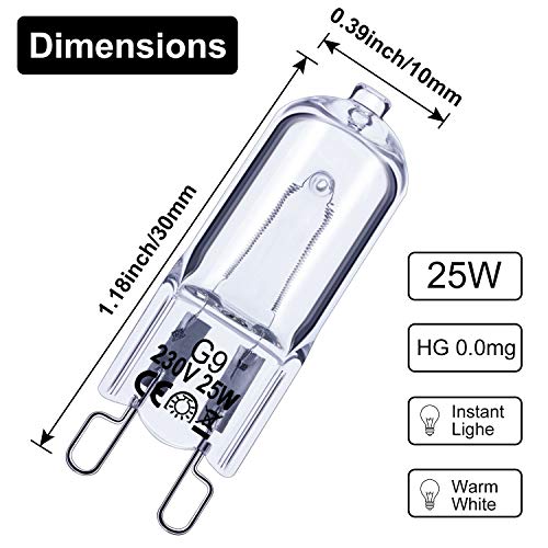 Lampadine Alogene Sostituzione Capsula Trasparente 220-240 V per Illuminazione del Fornello, Luci di Segnalazione, Classe Energetica C (12 Pezzi, 25 W)
