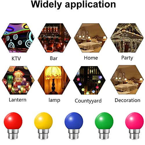 Lampadine B22 a baionetta - Confezione da 20 lampadine LED da 2W LED,globo lampada per festa decorazione 220 V - rosso giallo blu verde rosa