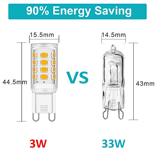 【RICAMBIO PERFETTO per LAMPADINE ALOGENE】 - Queste lampadine a led g9 forniscono un sostituto perfetto per lampadine alogene da 15W, 20W, 25W, 28W, 33Watt e consumano solo il 10% di energia. Non dimmerabile.