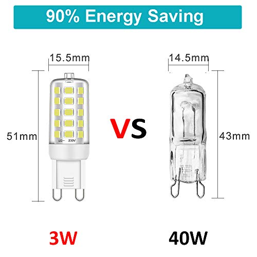 【RICAMBIO PERFETTO per LAMPADINE ALOGENE】 - Queste lampadine a led g9 forniscono un sostituto perfetto per lampadine alogene da 15W, 20W, 25W, 28W, 33W, 40Watt e consumano solo il 10% di energia. Non dimmerabile.