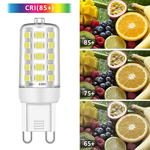 LED G9 Lampadine 3W Bianco freddo 6000K equivalenti a 25W 28W 33W 40W alogene Lampadine, 420LM, CRI> 85, G9 Presa Lampada, senza sfarfallio, non dimmerabile, CA 220-240 V, confezione da 5