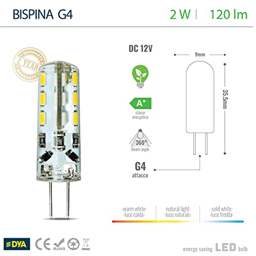 DYA - Set di 10 LAMPADINE LED BISPINA G4-2W EQUIVALENTI A 20W DELLA LAMPADINA ALOGENA - 170 Lumen - DC12V - misure ø9x35,5mm - luce calda 3000K° raggio di illuminazione 360° - non dimmerabili