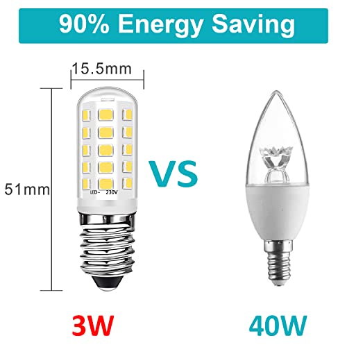 E14 Lampadine LED a Candela 3W Equivalenti a 40W Lampadine Alogene, Bianco luce diurna 4000K,E14 Piccole Vite Edison per Cappa Aspirante Congelatore, No Flicker, AC 220-240V, Confezione da 4