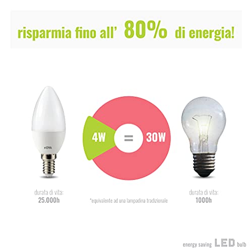 DYA - SET DA 10 LAMPADINE LED E14 CANDELE BIANCHE con attacco E14 - potenza di 4W EQUIVALENTI A 30W - LUCE CALDA 3000K - 395 LUMEN