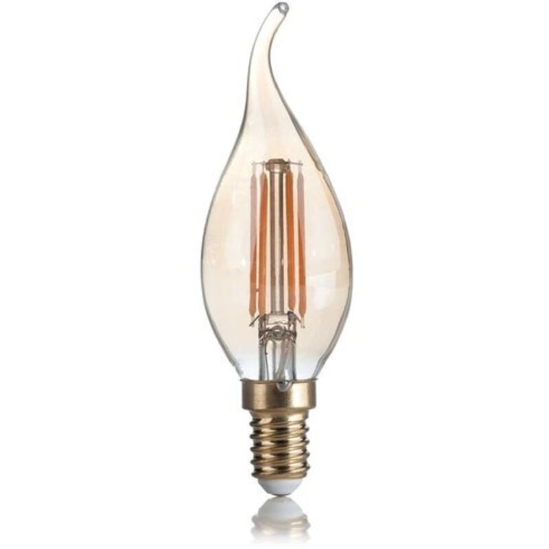 Lampadine Ideal Lux LAMPADINE DI QUALITA' AL MIGLIOR PREZZO Confezione da 10 lampadine Led con attacco piccolo E14 luce calda 2200k e 300 lumen. Lampadine di vetro ambrato con led a filamento. Realizzata in alluminio con copertura in vetro forma colpo di vento. Riproduce l'estetica delle lampadine antiche con filamento al carbone. La scarsa luminosità è ideale per creare un'atmosfera calda. Lampadina con tecnologia LED SMD. Queste lampadine sono ideali per le installazioni a vista, grazie anche ai materiali di qualità utilizzati per la realizzazione. (Non vendibili singolarmente, solo confezioni risparmio da 10 pezzi).