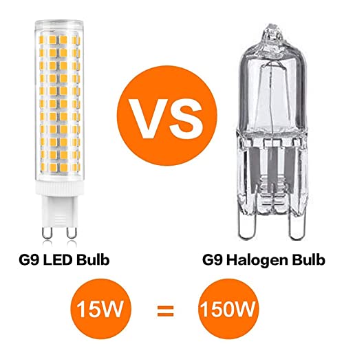 【Confortevole luce bianca calda 3000K】 G9 led 15W dimmerabile bianco caldo, senza sfarfallio e senza flash, dimmerabile, funziona molto bene contro la protezione degli occhi.La lampadina LED G9 fornisce una luce bianca calda morbida, 2700k-3000k, una luce molto piacevole crea un ambiente confortevole atmosfera.