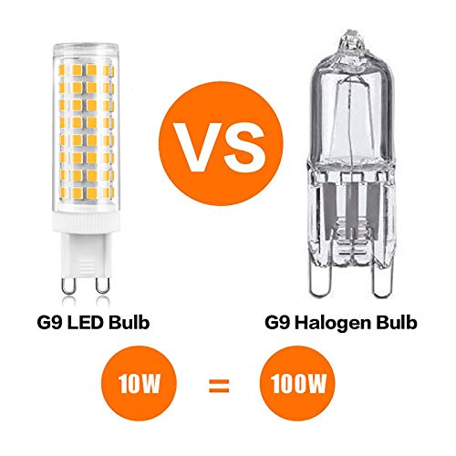 Luce intensa: le lampadine a LED G9 da 10 W emettono 1000LM, luce bianca calda 3000K da un angolo del fascio di 360 gradi, che può sostituire perfettamente le lampadine alogene da 80W-100W e offrire un ambiente luminoso ed energico. CRI 80+ garantisce un godimento visivo vivido con colori originali