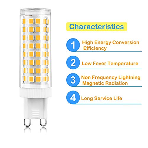 RISPARMIO ENERGETICO: Risparmia il 90% sulla bolletta elettrica! Le lampadine a risparmio energetico LED G9 da 10W prevedono la sostituzione delle lampadine alogene da 80W e 100W. DIMMERABILE e SENZA FLICKER. Le lampadine LED G9 da 10 W possono proteggere i tuoi occhi e fornire un'atmosfera confortevole e priva di stress