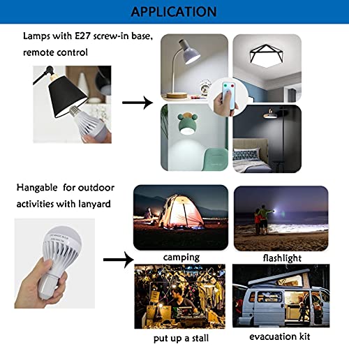 Risparmio energetico e multifunzionale: la base delle lampadine ricaricabili è E27, può essere utilizzata con un paralume come una lampadina, Batteria al litio incorporata, Lampadina LED ricaricabile che continua a illuminarsi anche senza alimentazione elettrica. è una scelta ideale per l'illuminazione da interni / da campeggio e può essere utilizzata come emergenza o torcia.