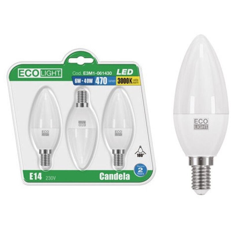 Lampadine Led Oliva Ecolight Conf. 3 pz. Tecnologia Led in classe A+. Consumi ridotti al 90%. Confezione 3 pezzi E14 - 6 Watt (40W) - 4000 K Luce Naturale - 490 Lumen
