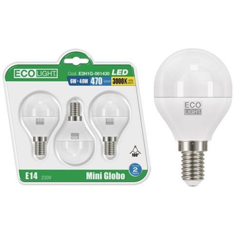 Lampadine Led Miniglobo Ecolight Conf. 3 pz. Tecnologia Led in classe A+. Consumi ridotti al 90%. Confezione 3 pezzi E14 - 8 Watt (60W) - 4000 K Luce Naturale - 806 Lumen