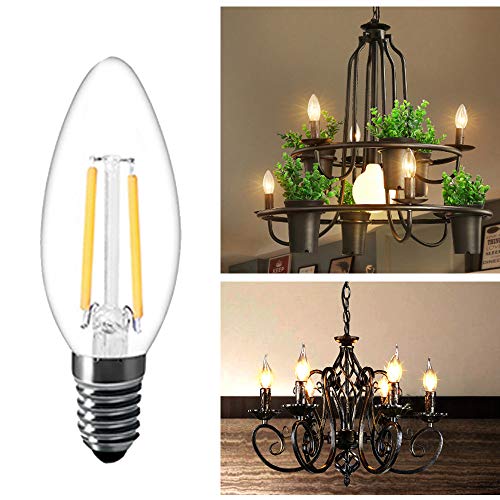 E14 LED Lampadine a Filamento 2W, 200LM 20W Equivalente C35 Small Edison Screw Lampadine a Candela, Luce bianca calda 2700K, 20-Pack