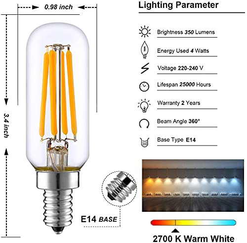 Lampadine a filamento LED Dimmerabile T25 4W Attacco E14, Bianco caldo 2700K, Equivalente a 40W, Consumo Basso, Risparmio Energetico (4)