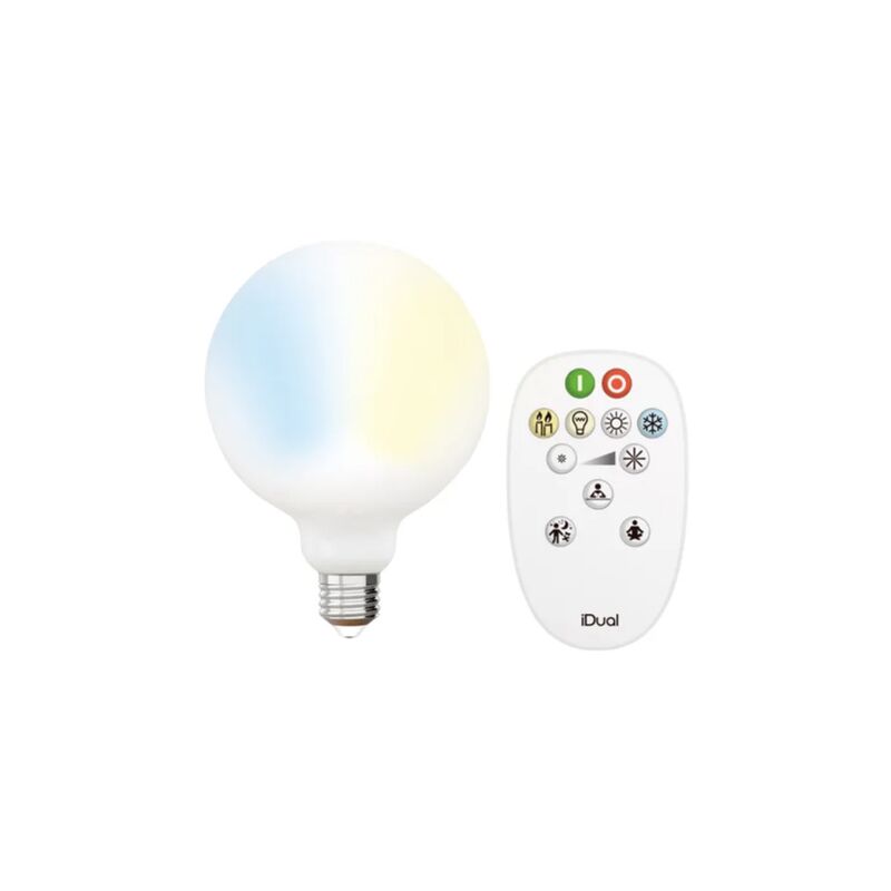 Caratteristiche Variazioni bianche. Variazione di intensita'. Telecomando incluso. DESCRIZIONE DEL PRODOTTO Il vantaggio del dimmer Lasciati sedurre da questo kit di lampadine LED con telecomando incluso. Cio' ti consente di variare l'intensita' della luminosita' per creare l'atmosfera che preferisci. Ottieni un'illuminazione calda o fredda a seconda dei tuoi gusti. Inoltre, il telecomando include impostazioni adatte per leggere, rilassarsi e dormire. Questo kit di lampadine LED iDual opale ha una base di tipo E27 molto comune. Puoi equipaggiare una lampada a sospensione, una lampada da terra o una lampada da tavolo. Oltre a promettere una lunga durata, la tecnologia LED si caratterizza per il basso consumo elettrico. Luce uniforme e ottimale Questo kit di lampadine globo a LED con telecomando diffonde una luce uniforme su tutto il perimetro grazie al vetro bianco opalino. Beneficerai anche di un buon indice di resa cromatica, molto vicino alla luce del giorno. La potenza di questo