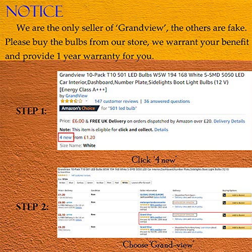 Lampadine a LED Grandview T10 5050 12 V W5W 501 2825 T10 LED Car 5 SMD 194 192 168 . 10 x lampadine a LED per macchina, luci per sportello macchina, per leggere in macchina, per il portabagagli.