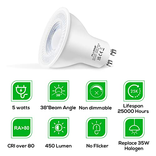 【Lampadine LED a Risparmio Energetico】 Sostituisci le vecchie lampadine alogene GU10 da 35 W con lampadine LED GU10 da 5 W, risparmiando il 90% sulla bolletta elettrica e soddisfacendo le tue esigenze di illuminazione. Che prodotto ideale per l'illuminazione domestica!