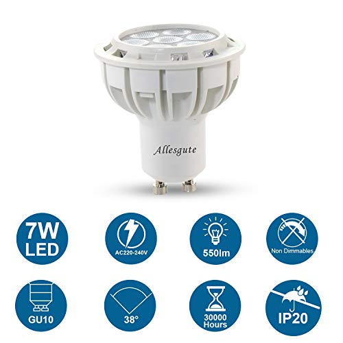 【Risparmio energetico】 Sostituite la lampadina alogena 50 - 60 W con un faretto LED GU10 7 W. Risparmia fino al 90% di energia. Durata media di 30.000 ore.