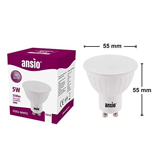 Lampadine LED GU10 Cool White, 5W Equivalente a 35 Watt Alogena, Non dimmerabile, 350 lumen, 6000K, Angolo a 120 ° - Confezione da 10