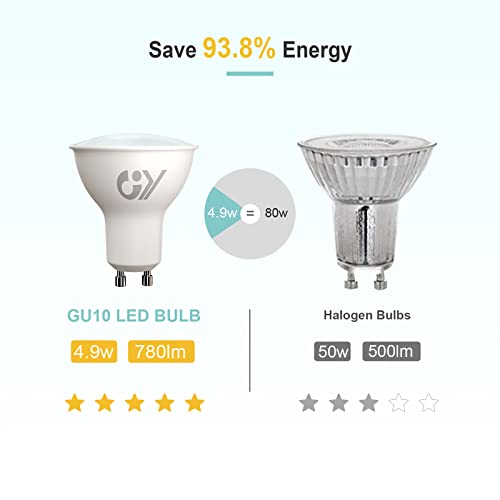 GY Lampadine GU10 LED, 4.9W (equivalenti a 80W), 780 Lumen, 3000K Bianco Caldo, Risparmio Energetico LED GU10, Lunga Durata, Basso Consumo, 120° Angolo del Fascio,Non Dimmerabile, 2 pezzi