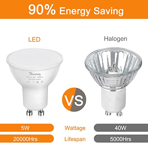 【Risparmio Energetico】- Queste lampadine LED GU10 da 5W sostituiscono una lampadina alogena da 40W, risparmiando oltre il 90% sulla bolletta dell'illuminazione elettrica. La confezione contiene 10 pezzi 3000K, 450 lumen faretti LED.