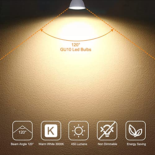 Lampadine LED GU10, 5W Lampadina GU10 Equivalenti a 40W, 3000K Luce Bianca Calda 450 Lumen, Angolo del Fascio di 120°, Faretto LED GU10 Non Dimmerabile, Pacco da 10