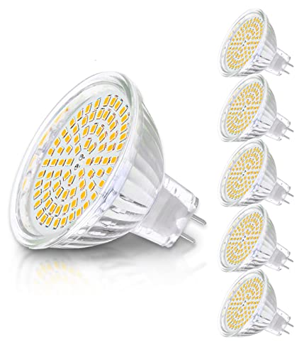 KDP Lampadine Led MR16 GU5.3 12V, Bianco Caldo 3000K, 5W Equivalenti 50W Lampada Alogena, Angolo 120 ° Led Spot, 6 Pezzi