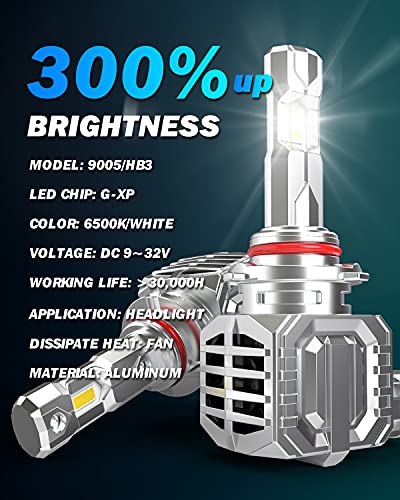 ★【Modello Di Fascio Super Luminoso E Perfetto】 Lampadine per fari a LED 9005 HB3 bianche xenon 6500K premium, 20000lm/set (10000lm/lampadina) con il miglior chip LED G-XP.Il design del fascio di luce super focalizzato offre una gamma di illuminazione più ampia e più ampia, aggiungendo sicurezza nella guida notturna. Il design del fascio perfetto 1: 1 è molto nitido e pulito senza macchie scure, 300% più luminoso delle lampadine alogene.