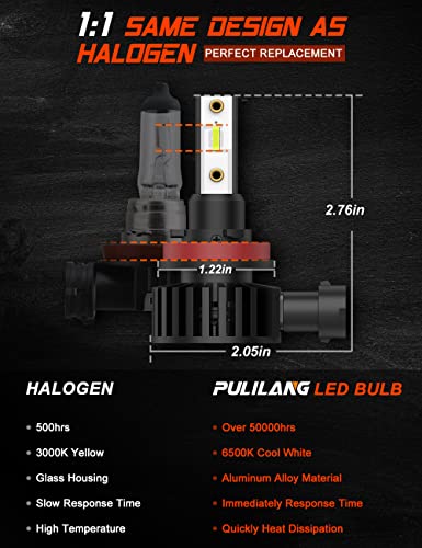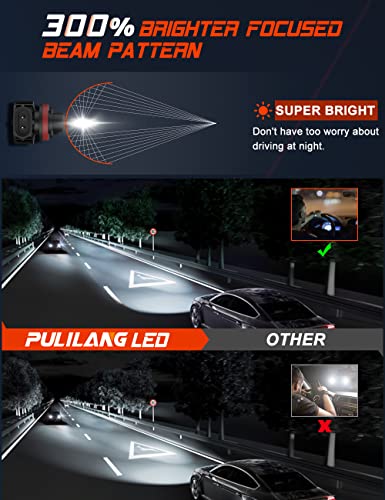 【300% PIÙ LUMINOSO DELLE LUCI ALOGENE】I fari LED Pulilang H11/H8/H9 recentemente aggiornati nel 2022 hanno una migliore visibilità, lo stesso design del fascio delle lampadine alogene e l'uso di chip LED CSP di alto livello per garantire un fascio perfetto senza punti neri e ombre. Sono tre volte più luminose delle tipiche lampadine alogene dei fari, il che rende più facile vedere segni e ostacoli di notte. La maggiore visibilità migliora la sicurezza della guida notturna.