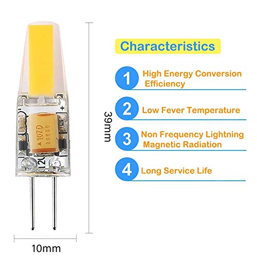 [Sostituzione perfetta]: una base G4 standard può essere facilmente montata al posto delle normali lampade alogene. Questo è un sostituto ideale per la lampada alogena G4. Illuminazione a fascio luminoso a 360 °, luce gialla morbida che si preoccupa maggiormente per i tuoi occhi.
