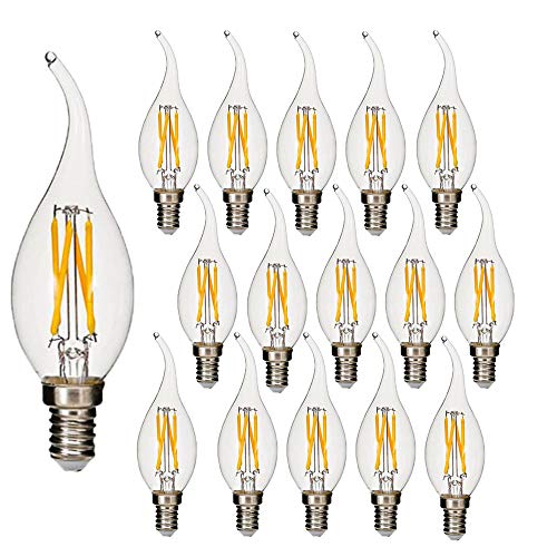 Set di 16 lampadine a LED E14 Vintage Candelabri 4W C35 400 Lumen Bianco Caldo 2700K Lampadine LED Lampadine E14 40W Equivalente, Lampada a candela LED C35 Filamento E14 Punta a Fiamma non Dimmerabile