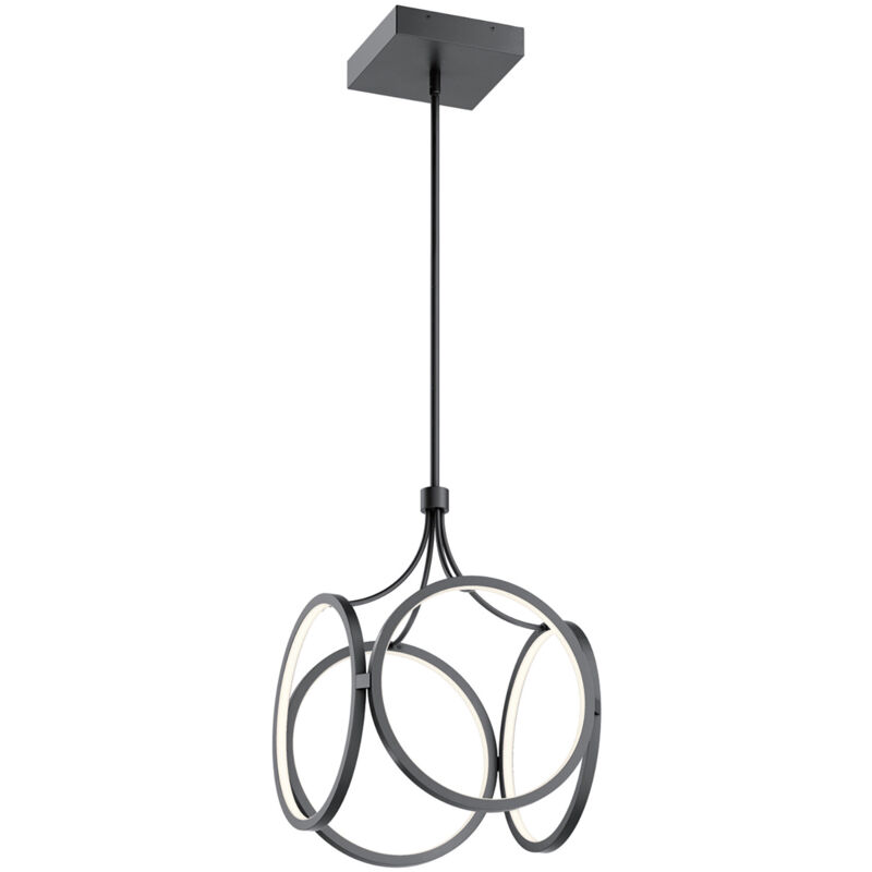 Elstead Kichler Ciri Plafoniera a sospensione LED integrata Nero opaco, 3000K | Finitura: nero opaco | Materiale: alluminio, ferro, acrilico satinato | Altezza: 50cm | Altezza minima: 72,4 cm | Altezza massima: 180 cm | Diametro: 35,6 cm | Tipo di lampada: LED integrato | N. di lampade: 1 | Lampadina inclusa: Sì | Kelvin: 3000k | Lumen: 1682Lm | Peso: 3,6 kg | Potenza (massima): 45W