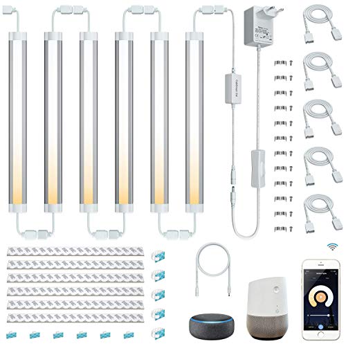 Lampaous 6 x 4 W Smart Wifi LED dimmerabile da incasso per armadio, illuminazione vetrina controllabile tramite app, compatibile con Alexa e Google Home