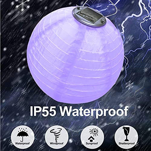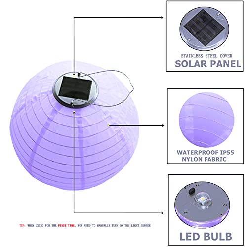 Lampioncini solari per esterni, resistenti alle intemperie, set di 2 lanterne a LED, a forma di sfera, lampade solari per giardino, terrazza, cortile, lanterne in nylon/seta, grandi 30 cm (viola)
