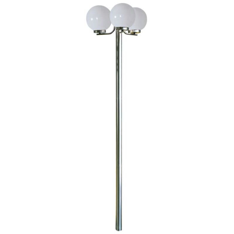 Descrizione: Lampione da giardino bianco dal design moderno, in acciaio inox, alto 220 cm. E' costituito da tre lanterne in plastica trasparente con diametro 25 cm. che montano lampadine della potenza massima di 60 watt (NON INCLUSE). Non solo crea una magica atmosfera, ma allo stesso tempo rende più sicuro camminare di sera in esterni. Decorativo e funzionale sia per il vostro giardino che per il vialetto d'accesso, il cortile, il posto auto. Specificazioni: Altezza: 220 cm Colore: bianco Numero di lanterne: 3 Diametro lanterne: 25 cm Materiale: acciaio inossidabile Materiale lanterne: PMMA Tipo di plastica: trasparente Portalampada: E27,Max. 60W (GLS), 11W(CFL) Portata massima: 3x60 watt Voltaggio: 50Hz, 220-240V~ IP44 Quantità lampadine: 3 Sensore: no