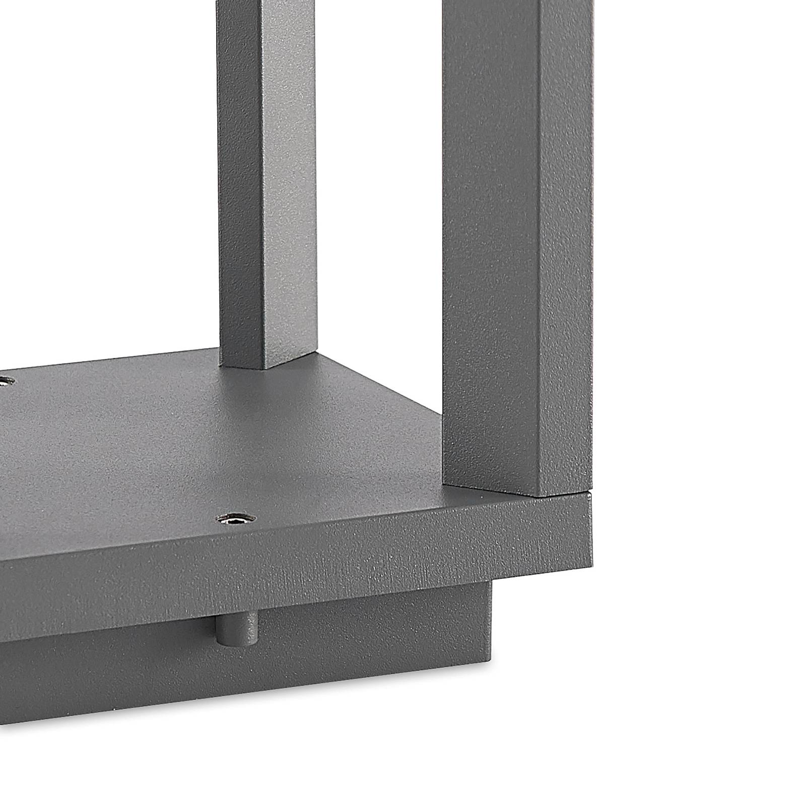 Attraente lampione a LED Gamion con colore di luce bianco caldo Il lampione a LED Gamion si presenta in un look di tendenza in grigio scuro e colpisce per il suo design Mod, che appare aperto ed elegante. I LED installati in modo permanente sono nascosti sotto la copertura del paralume chiaro e forniscono una luce bianca calda che si diffonde principalmente verso il basso e ai lati, riducendo il rischio di abbagliamento. Questo apparecchio dà il meglio di sé se posizionato in fila lungo il sentiero del giardino, illuminando piacevolmente il percorso verso l'ingresso della casa.