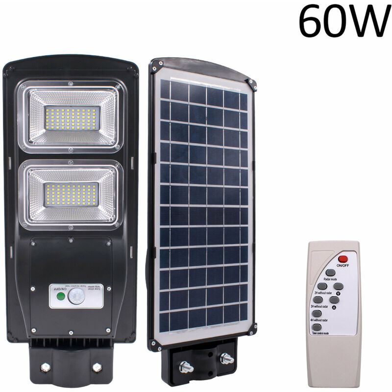 PC Colore: nero Peso: 2268 g/5 libbre Dimensioni: 47*19*5,3 cm/18,5*7,5*2,1 pollici Elenco dei pacchetti: 1*Lampada stradale con sensore radar a energia solare 1 *Lamiera 4*Viti 1*Telecomando