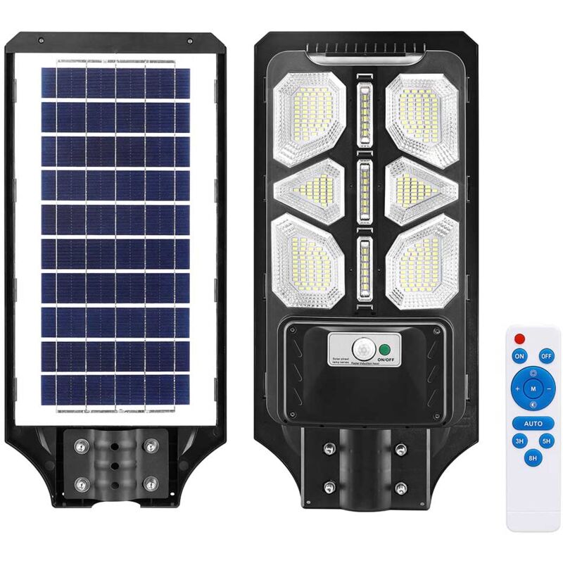 Lampione Lampione Stradale Faro LED 90W Solare Luce Esterno Sensore Movimento Telecomando Illumina gli ambienti esterni di casa tua o della tua attività commerciale con il nuovissimo lampione stradale a LED ad altissima luminosità con pannello solare. La superficie di illuminazione di questo incredibile lampione, vanta di ben 930 lumen di pura potenza illuminante garantiti da un chip a 294 LED che produce una luce bianco freddo ( 8000K ) ad altissima luminosità con un consumo di soli 90W, inoltre il faro è dimmerabile e la sua luminosità può essere regolata tramite il pratico telecomando, inoltre la particolare angolazione del fascio di luce garantisce un ampissima superficie di illuminazione. Il lampione stradale da esterno è fornito di pratico sensore di movimento, che passa automaticamente il livello di illuminazione del faretto da risparmio energetico (400 lumen) ad illuminazione massima (800 lumen) ogni qualvolta il sensore rivela il movimento di persone, ciò garantisce un