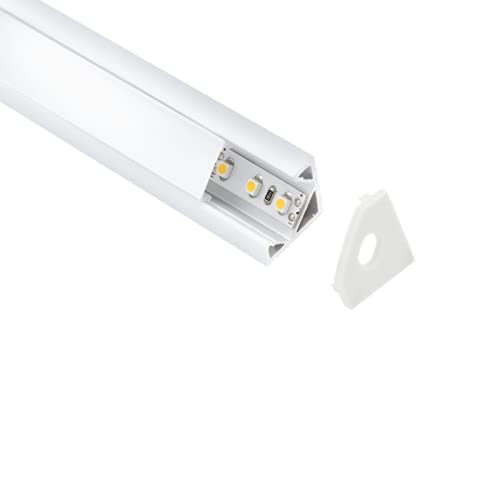LAMPO PRKITANGB PROFILO ALLUMINIO ANGOLARE BIANCO PER STRISCIA STRIPLED L. 2 mt COMPLETO DI: 1 diffusore in policarbonato opaco, nr. 2 tappi chiusi, nr. 1 tappo con foro, nr. 4 clips di fis