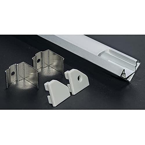 Profilo in alluminio a superficie con emissione angolare, lungo 2 metri per strisce Led, confezionato singolarmente con nr. 1 diffusore in policarbonato opaco, nr. 2 tappi chiusura, nr. 1 tappo con foro, nr. 4 clips di fissaggio il tutto incluso nella confezione.