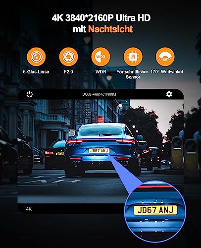 Registrazione della fotocamera da cruscotto 4K 3840 x 2160P Questa telecamera da cruscotto WiFi ti consente di ottenere una risoluzione ultra HD di 3840 x 2160P / 30 fps, registra ogni dettaglio sulla strada per te. Con un sensore avanzato e un ampio angolo di 170, che può coprire il campo visivo anteriore a 3 vie e può catturare chiaramente ogni stato della strada e i dettagli della targa, garantendo prove affidabili per una varietà di situazioni.