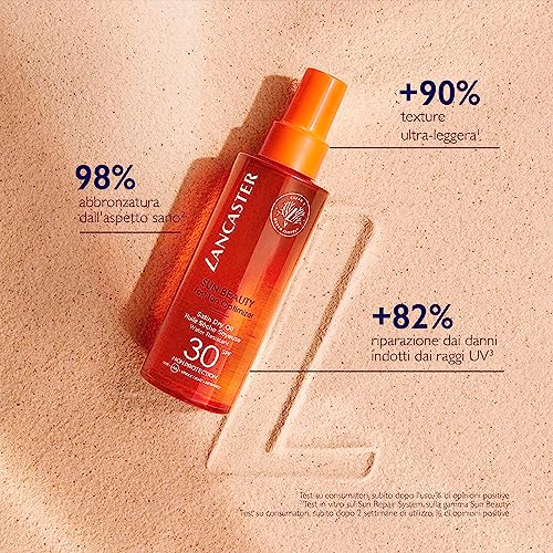Lancaster Sun Beauty Fast Tan Optimizer Satin Dry Oil - Olio Solare Secco e Satinato SPF50, No Effetto Untuoso, Finish Luminoso e Asciutto, 150 ml
