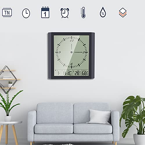Lancoon Grande orologio da parete con schermo digitale, con temperatura interna e umidità, con display TN trasparente, mute-viaggio snooze per sonno pesante, anziani