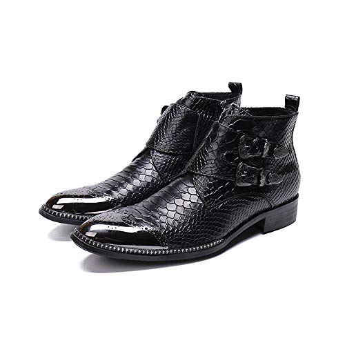 Rui Landed Stivaletti alla Moda da Uomo Casual Retro Snakeskin Texure Metal Punta a Punta High-Top comode Scarpe Cerniera Formale Discoteca (Color: Nero, Dimensione: 46 EU)