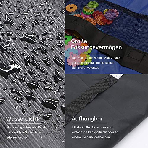 【Pieghevole e portatile】 Se necessario, il tappetino per giocattoli può essere piegato in piccoli pezzi senza occupare spazio. Con un design a chiusura rapida, basta tirare la tracolla e riporre il giocattolo nella borsa a tracolla in pochi secondi.La mamma non deve più preoccuparsi di risolvere i problemi dei giocattoli per bambini e del corpo stanco e dolorante. La Borsa Per Giocattoli è davvero facile e veloce.