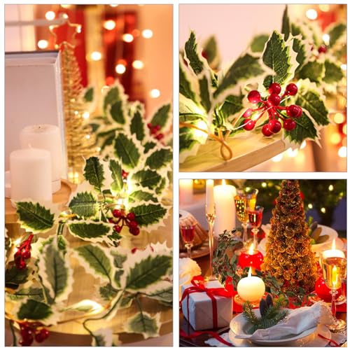 【Decorazione perfetta】 Bacche rosse brillanti e foglie verdi di agrifoglio creano un'atmosfera festosa allegra e vivace per te e rendono le vacanze ancora più belle!