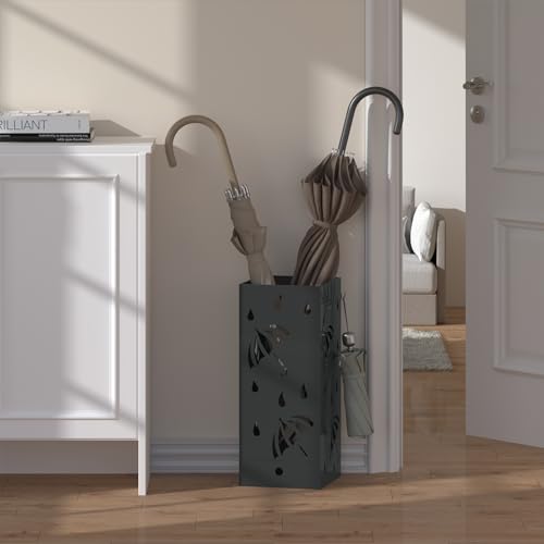 Laneetal Portaombrelli in Metallo con Vassoio Estraibile, Porta Ombrelli per Interno con 4 Ganci, Portaombrelli con Motivi a Ritaglio di Ombrelli e Gocce di Pioggia, 20x20x49cm, Antracite